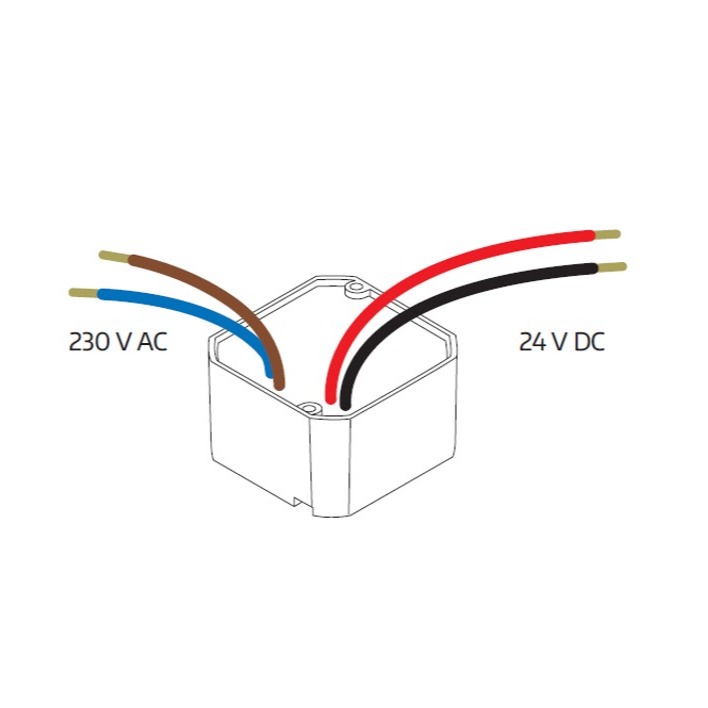 Schaltnetzteil zur Versorgung von 24 V Antrieben, mit einer max. Stromaufnahme von 1,5 A, zur Montage in Unterputzdosen.